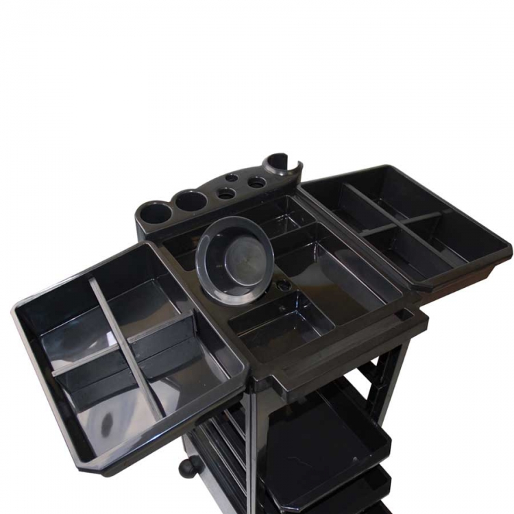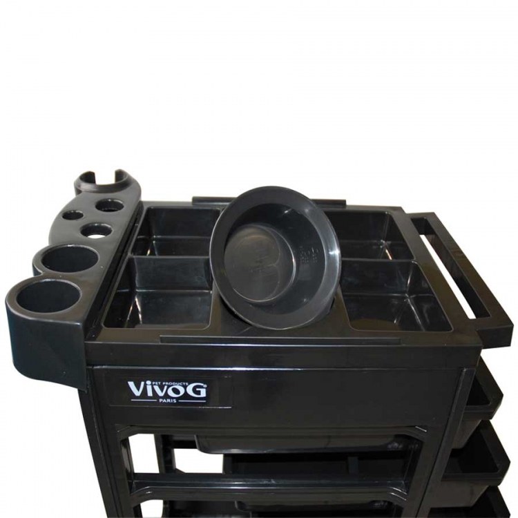 Beistelltisch für Groomerzubehör auf Rollen. Der mobile Ordnungsassistent in Ihrem Hundesalon, verschwenden Sie keine Zeit mehr und haben Sie Ihre Werkzeuge immer griffbereit zur Hand, genau da wo Sie sie gerade benötigen. 5 Schubladen, praktische Ablagefächer und ein Föhnhalter geben Ihren hochwrtigen Arbeitsgeräten einen idealen Platz. Das oberste Fach ist zur einfachen Reinigung abnehmbar.32x39x90cm