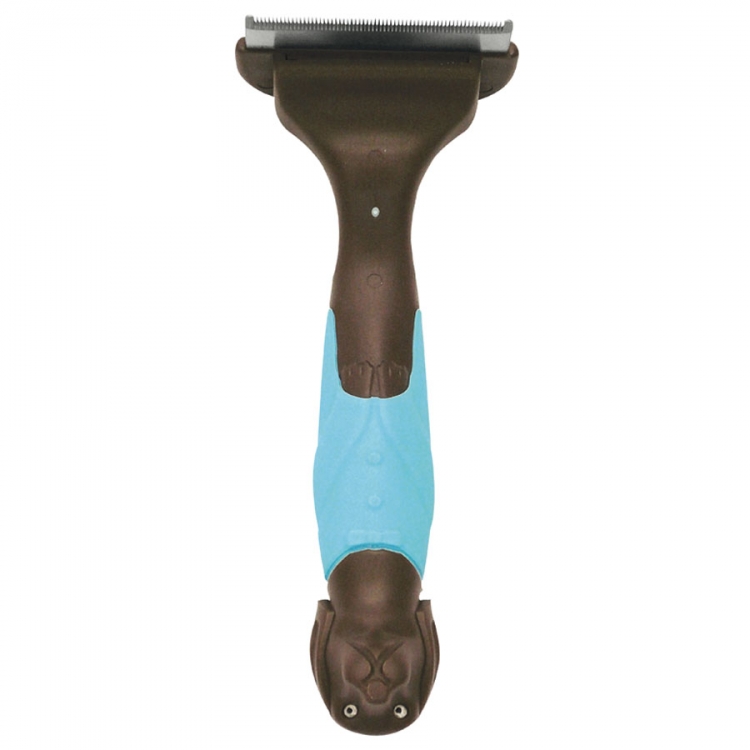 Der kleine Techni-Groom von Martin Sellier ist eine revolutionäre Hundebürste mit der sich abgestorbene Haare aus der Unterwolle des Hundes ganz leicht entfernen lassen. Der Techni-Groom hat eng aneinander liegende Zinken um ein perfektes Resultat zu erzielen. Mit dieser Bürste lässt sich das Haaren bei regelmäßiger Anwendung radikal reduzieren. Der Techni-Groom ist für jeden Felltyp geeignet. Die Bürste hat einen rutschfesten Griff mit Hundekopf. Größe: 4,5cm.