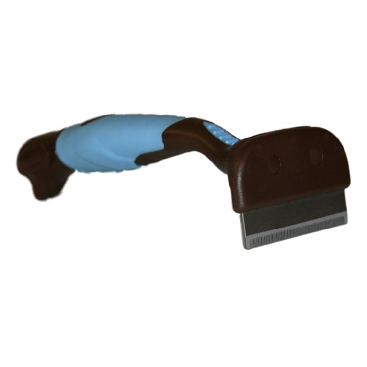 Der mittelgroße Techni-Groom von Martin Sellier ist eine revolutionäre Hundebürste mit der sich abgestorbene Haare aus der Unterwolle des Hundes ganz leicht entfernen lassen. Der Techni-Groom hat eng aneinander liegende Zinken um ein perfektes Resultat zu erzielen. Mit dieser Bürste lässt sich das Haaren bei regelmäßiger Anwendung radikal reduzieren. Der Techni-Groom ist für jeden Felltyp geeignet. Die Bürste hat einen rutschfesten Griff mit Hundekopf. Größe: 6,5cm.