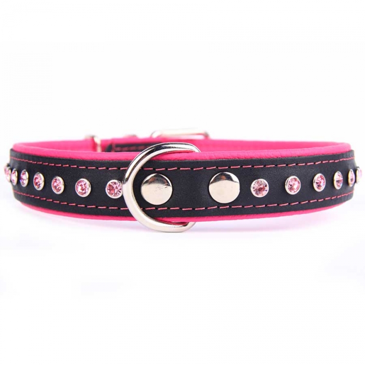 Sie lieben klassisches Design aber es soll farbig sein und auffallen? An dem My Dogone Lederhalsband Pink&Black funkelt und glitzert wunderhübscher pinkfarbener Strass auf schwarzem Leder. Die Farbe der vernieteten Strasssteine wiederholt sich harmonisch in dem Pink des Leders, mit dem das Halsband weich unterlegt ist. Das perfekte Ausgeh-Outfit für Ihren Hund.