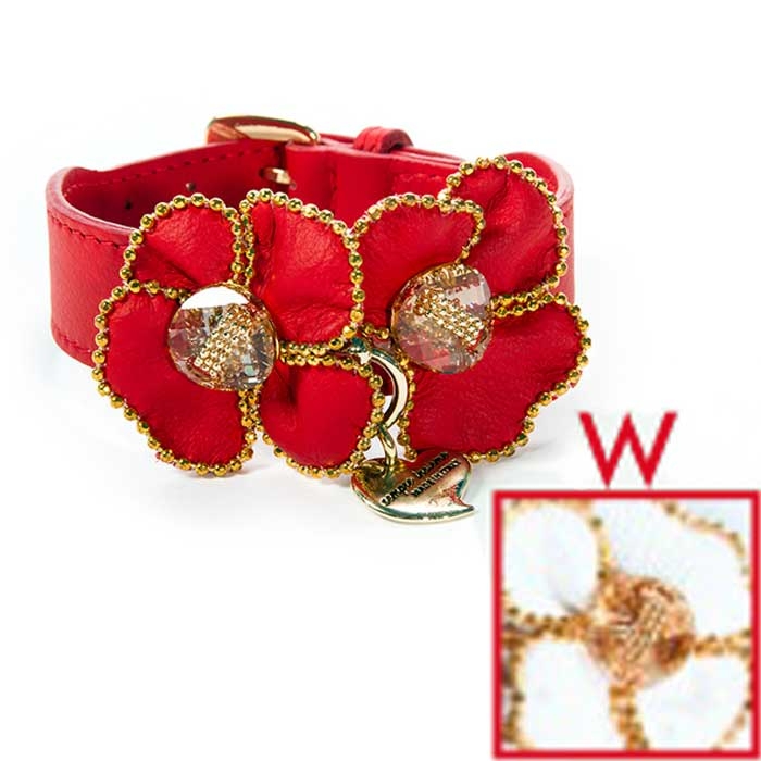 Halsband Leder CHARM profiliert mit Blumen CM.22 weiß