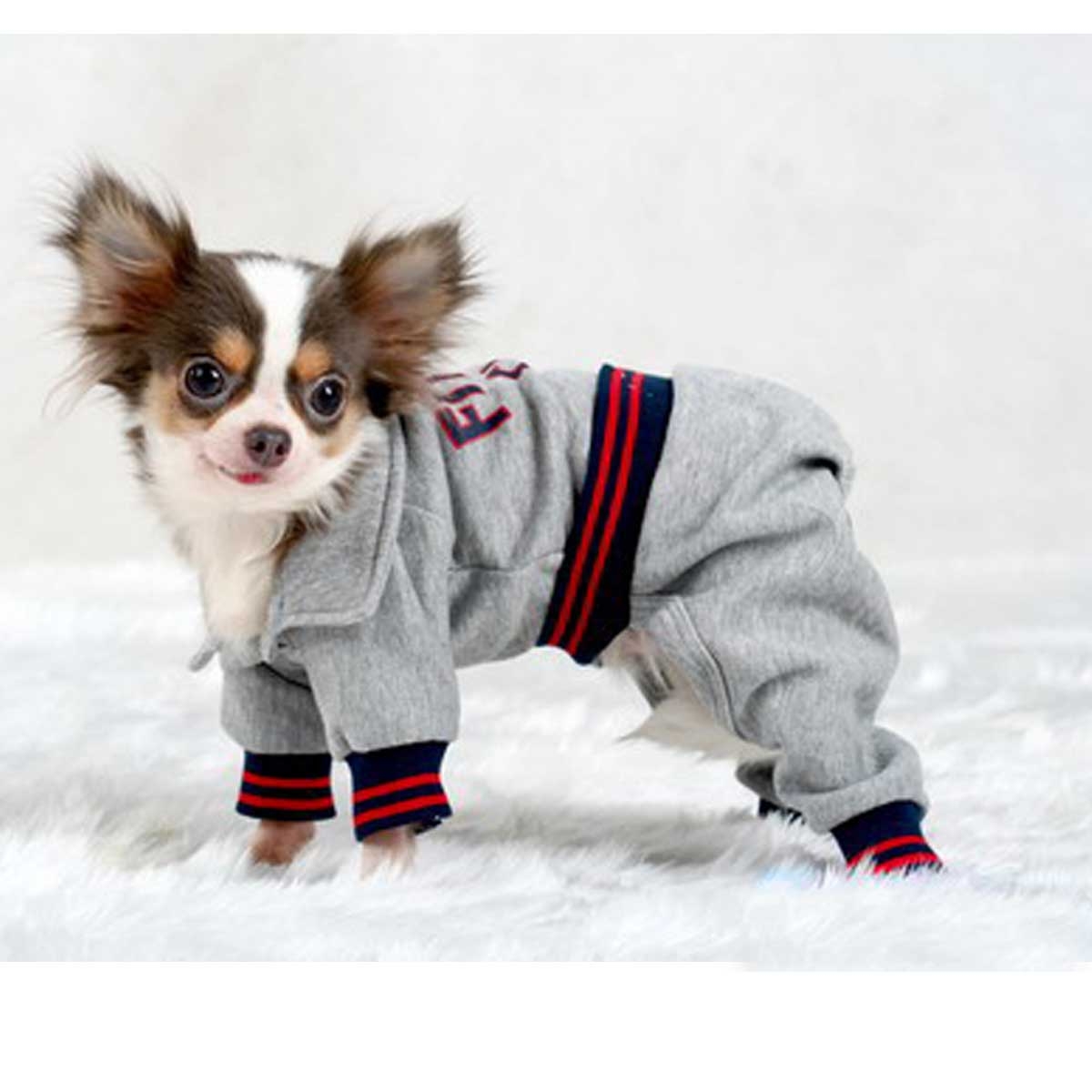 Grauer Hunde-Jogginganzug für 4 Pfoten mit rot-blauer Aufschrift FITNESS CLUB. Der weiche Baumwollstoff und der bequeme Schnitt machen den Hausanzug zum sportlichen Lieblingsoutfit. Der Hundeanzug ist ideal für die gemeinsamen sportlichen Aktivitäten mit Frauchen und/oder Herrchen. Details: einteiliger Hosenanzug für 4 Pfoten mit Kragen grau Bündchen und Aufschrift rot-blau. Maße ca: Rückenlänge/ Brustumfang XS: 25cm /32cm S: 27cm /35cm M: 29cm /4cm L: 33cm /44 cm XL: 39cm/ 54cm XXL: 45cm/ 6cm