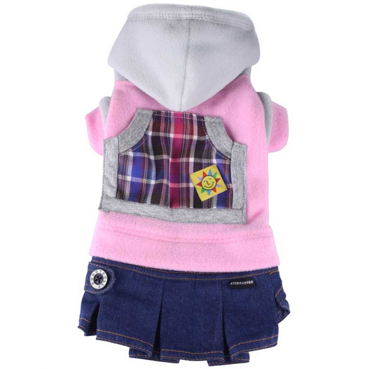 Dieses Hundekleid von Doggydolly Hundemode hält mit dem Fleece-Pulli schön warm und ist gleichzeitig ein absoluter Hingucker durch das modische Design! Das Kleid für Hunde besteht aus einem rosa Fleece-Pullover mit grauer Kapuze und karierter Tasche, sowie einem schicken Jeansrock. Dieses Kleid für die schicke Hundedame gibt es auch in rot und grün.