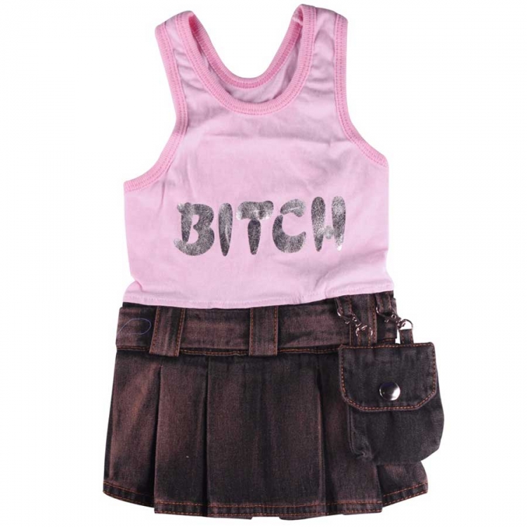 Pinkfarbenes Baumwoll-Tanktop kombiniert mit Jeansrock als Einteiler von Doggydolly Hundebekleidung. Besondere Highlights des Hundekleides sind der Glitzeraufdruck und die abnehmbare Leckerli-Tasche. Farbe: Tanktop pink mit Glitzer-Silberaufschrift Bitch Rock dunkelblauer Denimstoff abnehmbare Leckerlitasche aus Denim. Maße: Rückenlänge Brustumfang XS 26cm 32cm S 29cm 36cm M 31cm 38cm L 33cm 4cm XL 38cm 42cm XXL 46cm 48cm