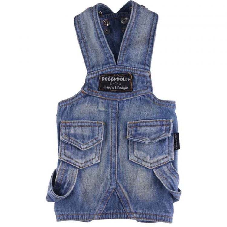Der dunkelblaue Latzrock von Doggydolly Hundemode ist ein ideales Outfit für kühle Sommertage. Durch den klassischen Schnitt und das sportliche Design ist der Hunderock alltagstauglich. In Kombination mit den Shirts und Blusen aus unserer Kollektion lässt sich der Jeansrock zu einem modischen Designeroutfit aufpeppen. Auf dem Rücken sind zwei Taschen aufgenäht, in denen sich Leckerlies verstauen lassen. Durch die verstellbaren Träger und die Druckknöpfe am Bauch lässt sich das Jeanskleid ideal der Figur des Hundes anpassen.