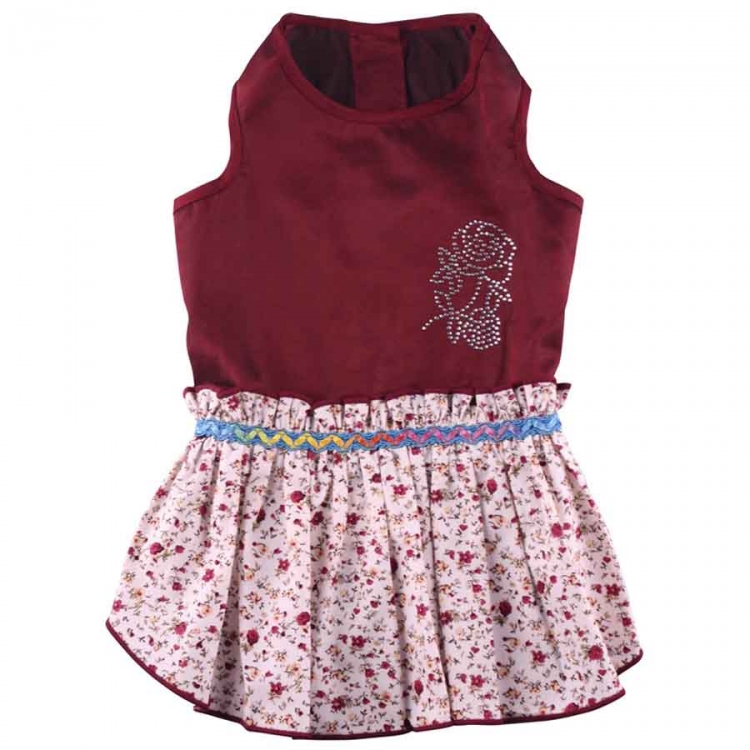 Verspieltes rotes Kleid mit Blümchenmuster von Doggydolly Hundemode. Das Hundekleid besteht aus einem ärmellosen roten Top und einem weißen Rock mit rotem Blumenmuster. Auf dem Top befindet sich eine Strassrose. Das Kleid schließt mit einem Klettverschuss am Bauch. Ein leichtes Outfit für warme Tage, perfekt zum Herumtollen auf der Sommerwiese!