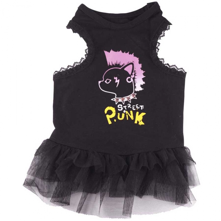 rmelloses Punkkleid mit Spitzenbesatz von Doggydolly Hundemode. Dieses Hundekleid ist ein Muss für Vierbeiner, die gerne auffallen! Das Kleid ist aus elatischem, schwarzen Baumwollstoff und hat einen Spitzenbesatz an den Ärmellöchern sowie einen Tüllrock. Auf dem Tanktop ist ein Hund mit Punkfrisur sowie die Aufschrift Street Punk in knalligem Pink und Gelb.