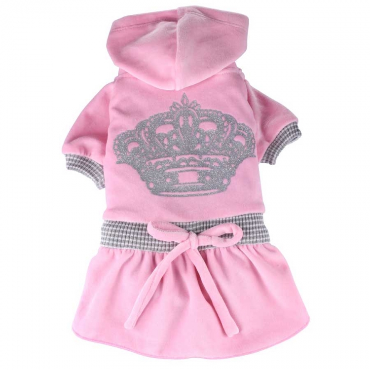 Dieses süße rosa Hundekleid von Doggydolly ist aus kuscheligem Nickistoff gemacht. Es hat einen Aufdruck auf dem Rücken, der eine Krone zeigt. Die Bündchen sind grau-weiß. Am Übergang zum Röckchen ist ebenfalls ein stretchiger, grau-weißer Bund eingezogen, der geschnürt werden kann. Die Kapuze schützt die Öhrchen Ihrer kleinen Prinzessin auch im freien vor Wind und Wetter. Dieses niedliche Kleidchen ist auch in den Farben Schwarz, Rot, Grau und Bordeauxrot erhältlich!