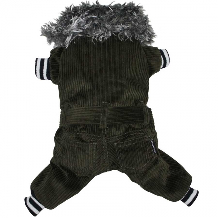 Der dunkelgrüne Cordanzug von Doggydolly Hundebekleidung hält Ihren Hund den ganzen Winter über schön warm. Der Hundeanzug sorgt mit seinen elastischen Bündchen für eine perfekte Passform. Der Anzug wird am Bauch durch einen Klettverschluss geschlossen. Der Kragen dieses ansonsten klassischen Modells ist aus Kunstfell. Dieses Modell gibt es auch in grau.