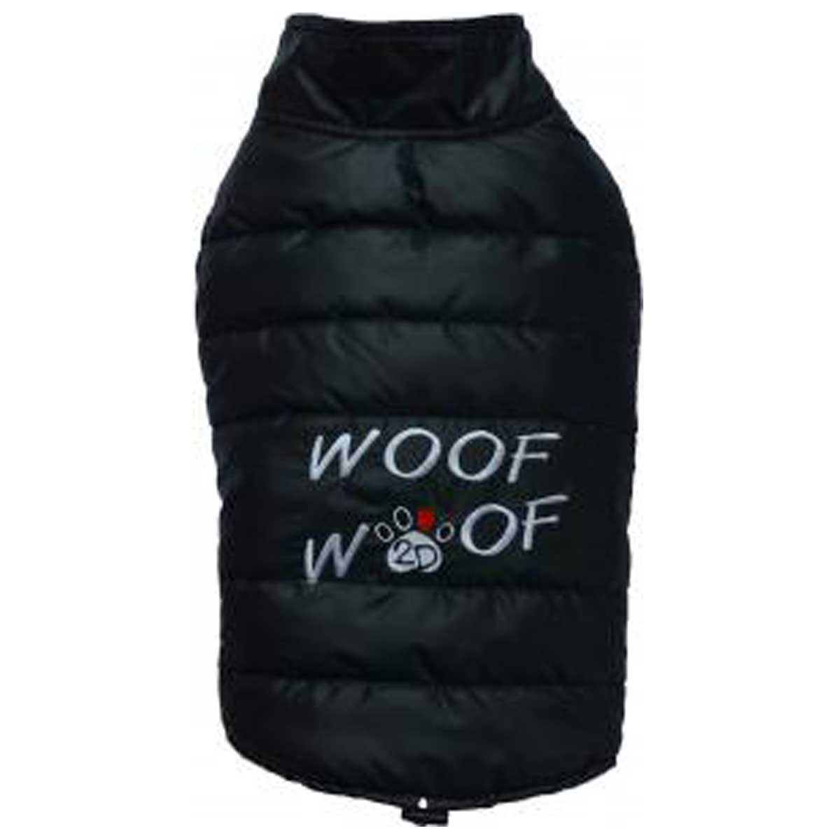 Die schwarze Hunde-Winterweste Woof mit dem witzgen Schriftzug von DoggyDolly ist superbequem und lang geschnitten, so dass die Nierenpartie immer perfekt bedeckt ist. Durch die durchgehendende Klettverschlussleiste unter dem Bauch ist auch die empfindliche Bauchpartie vor Nässe und Kälte geschützt, zudem ist die Hundejacke dadurch sehr einfach an- und auszuziehen. Der westenartigen Schnitt bietet optimale Bewegungsfreiheit für den Hund und die Weite kann durch den regulierbaren Gummizug individuell angepasst werden. Eine warme Fütterung und die wasserabweisenden Eigenschaften machen die schicke Steppweste für Hunde zu einem absoluten Must-Have für die Herbst- und Wintersaison. Waschbar bei 30°C Feinwäsche. Größe XS Brust 31-33cm, Rücken 18-20cm