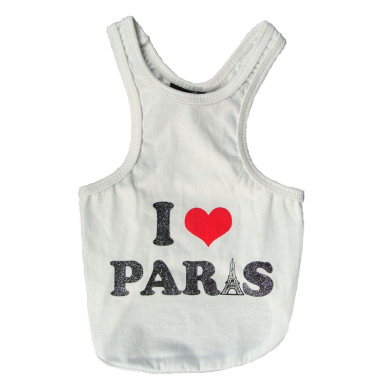 Für alle Paris-Romantiker... Das Hundeshirt von Doggydolly darf auf der Reise nach Frankreich nicht fehlen. Das Hundetanktop hat einen Aufdruck der die Worte "I love Paris" und einen stilisierter Eifelturm zeigt. Dabei wurde das Wort "love" durch ein rotes Herz ersetzt.