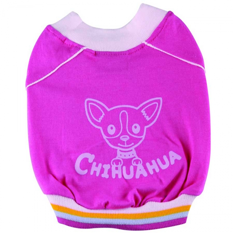 Ein süßes Hundeshirt von Doggydolly Hundemode in pink. Die Bündchen des Hundesweaters sind orange, hellblau und pink gestreift und es hat einen süßen, weißen Chihuahua-Aufdruck. Maße: (Rückenlänge x Brustumfang) XS 13cm x 2cm S 17cm x 22cm M 2cm x 32cm