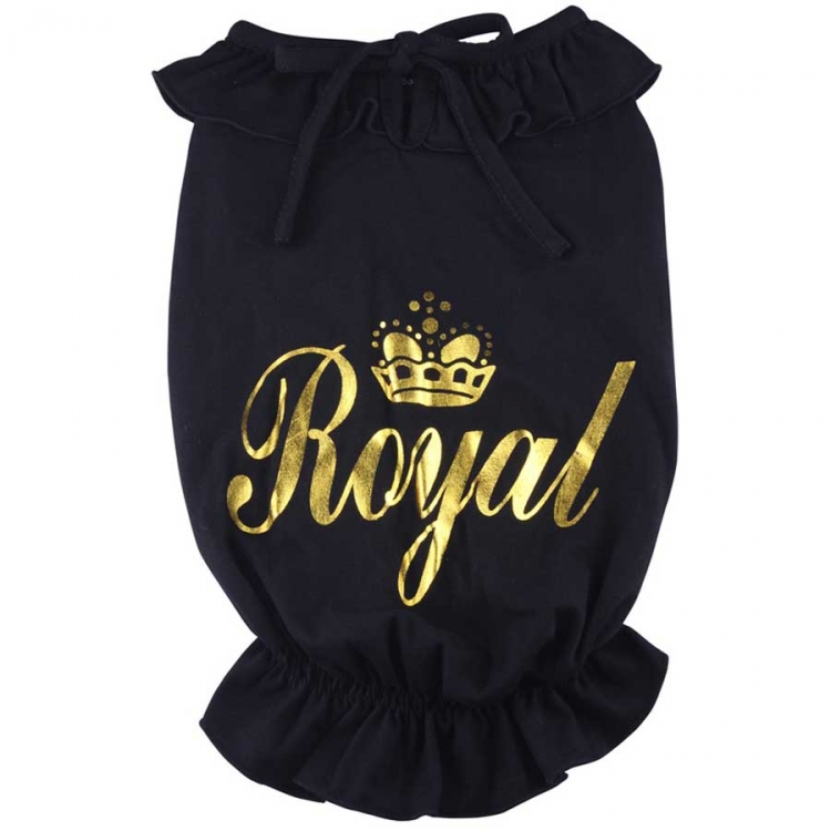 Mit diesem Shirtkleid kann sich Ihre kleine Dame sehen lassen. Es ist schwarz und hat auf dem Rücken in goldener Farbe eine Krone und das Wort Royal aufgedruckt. Am unteren Teil ist das Shirtkleid gerafft, sodass der Rock Falten wirft. Der Kragen ist leicht gerüscht und hat ein kleines Schleifchen. Edel und sexy zugleich! Dieses Shirtkleid ist auch in rot erhältlich.