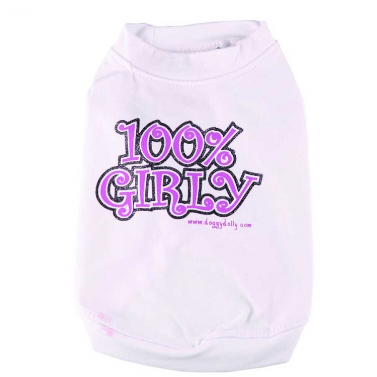 Leichtes Girl Hundeshirt weiß aus Baumwolle mit pink-silbernem Aufdruck "100% Girly" von Doggydolly Hundebekleidung. Dieses Shirt ist ein Highlight für die Mädchen unter den Hunden. Das T-Shirt für Hunde ist auch in rosa erhältlich
