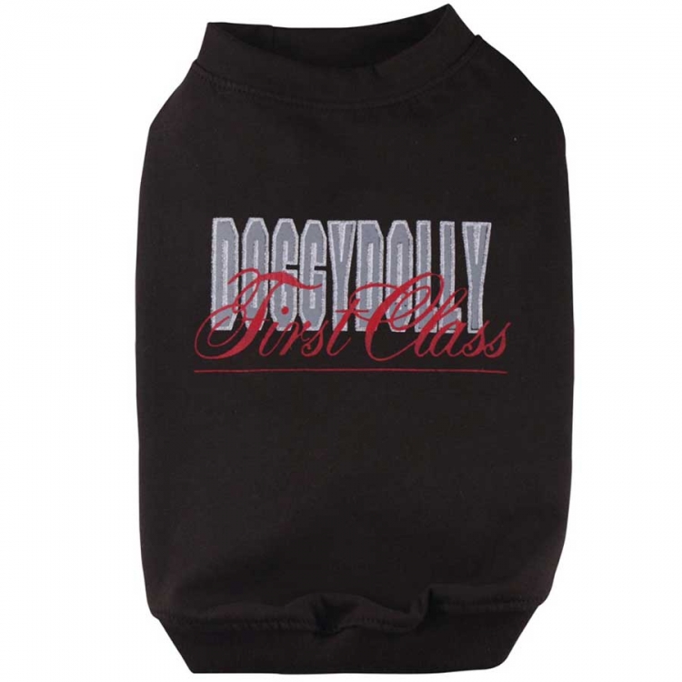 Bequemes Hundeshirt in der Farbe Braun vom Designerlabel Doggydolly Hundemode. Auf der Rückenpartie findet sich die Aufschrift "Doggydolly First Class" in schwarzer und roter Schrift.