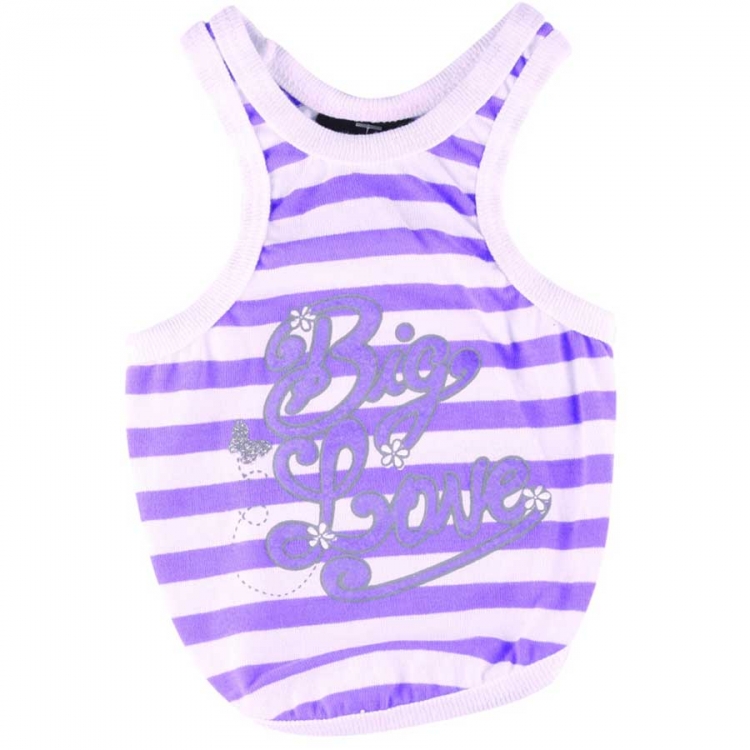 Mit diesem somerlichen Hundetanktop von Doggydolly hat ihr Liebling etwas luftiges an und ist für die warmen Sommertage perfekt gekleidet. Das Tanktop für Hunde ist aus Baumwolle und lila-weiß gestreift.Auf dem Rücken hat es einen süßen Aufdruck, der die Worte "Big Love" zeigt.