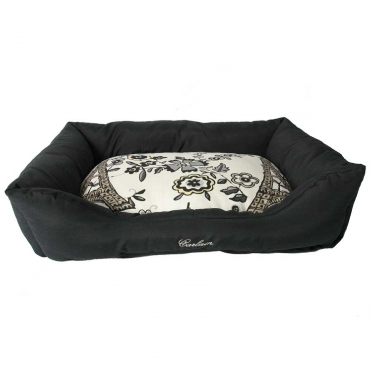 Hundekorb Carlain Paris aus hochwertigem Stoff, in Frankreich produziert, außen schwarz, Liegefläche crèmefarben mit Glitzer-Eifelturm. Liegefläche: ca. 55x40cm, Außenmaß: ca. 75x55cm