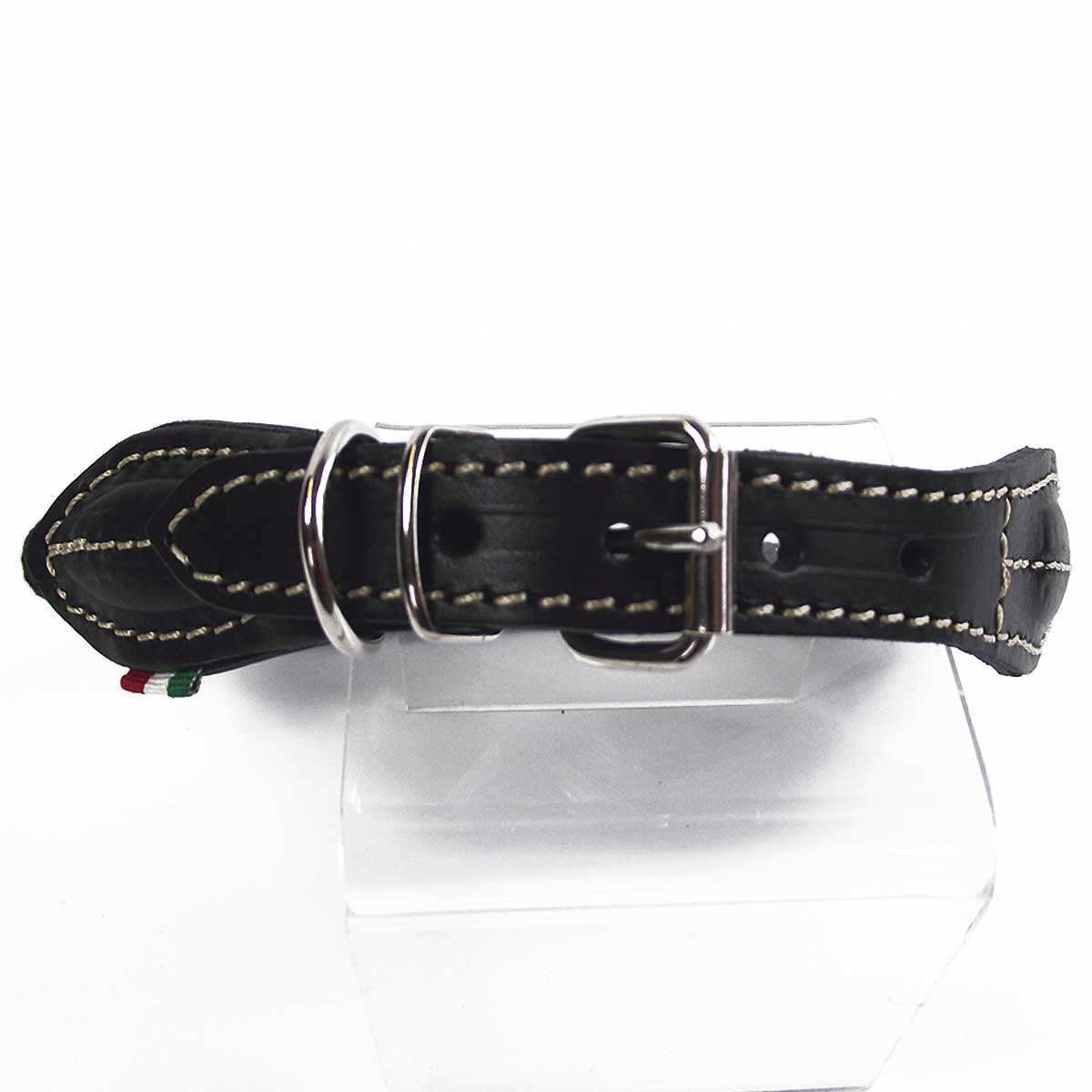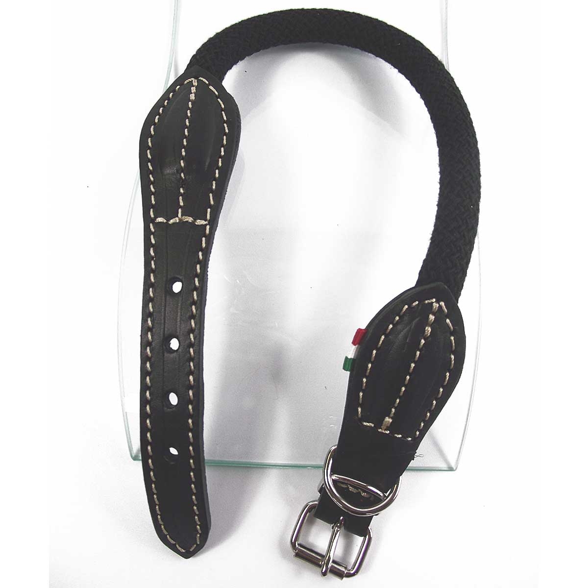 Dog Collar Cotton Deluxe leather black 35x0,7cm