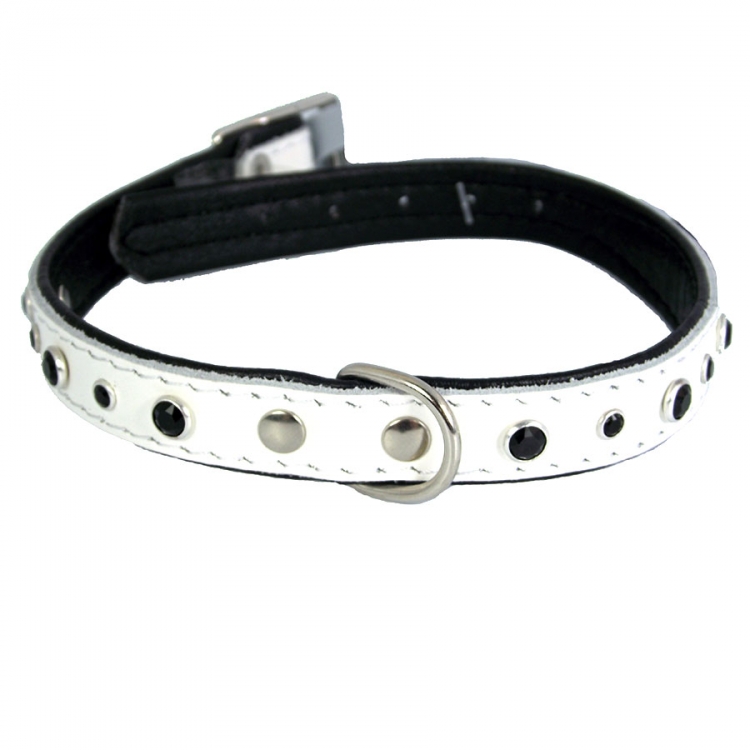 Leather collar BLACK WHITE 30x1,2