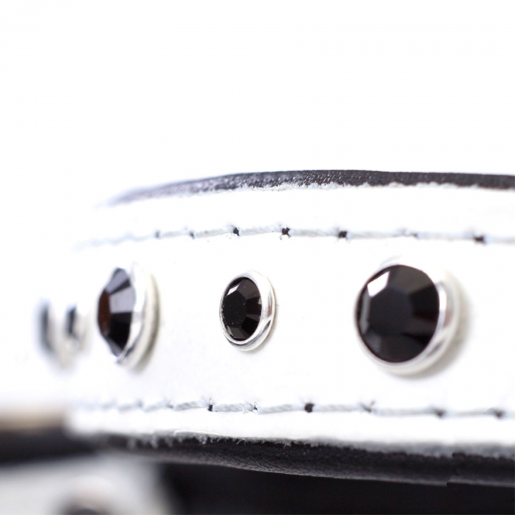 Leather dog collar BLACK'n WHITE Swarovski black stones 30x1,2