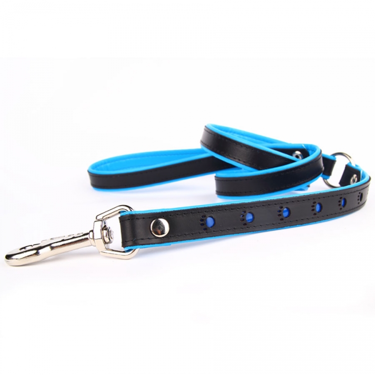 Leather dog leash reflector paw BLACK'n BLUE 110x2,5