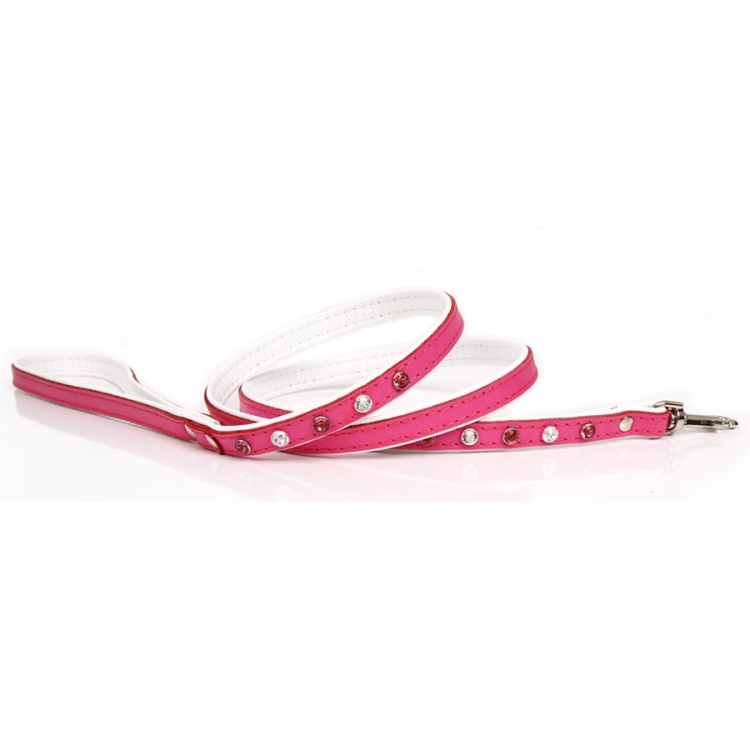 Leather dog leash PINK Elegance Swarovski white and fuchsia 120x1,2