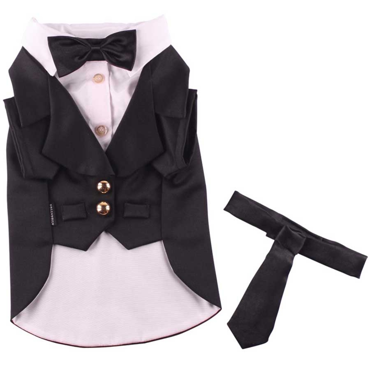 DoggyDolly Big Dog Smoking-jacket for big dogs, with flye and tie, black and white. Size BD_S chest 74-76, back 54-56cm