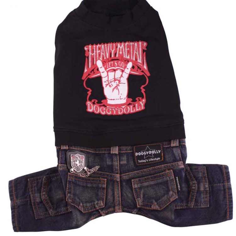 That jeans combination will attract all looks at open air parties! The tissues of cotton and jeans are perfect for the mid-season and keeps your dog warm. Details: -lots of pockets at the back and on the sides of the jeans pant -dark blue jeans trouser -black shirt