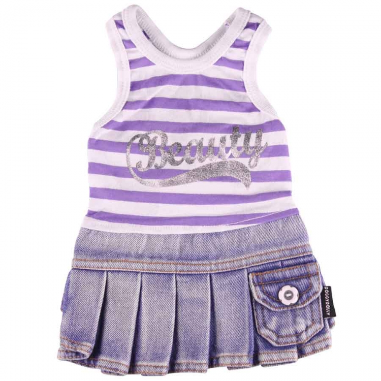 That pleated jeans skirt combined with a nice tanktop is a perfect way to show your darling in fashion dog clothes.