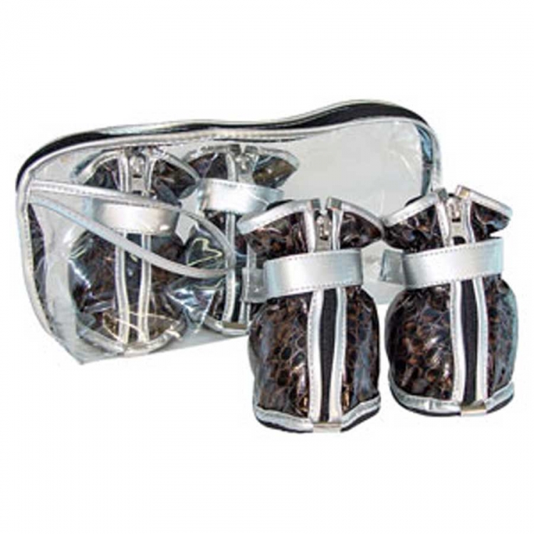 Dog shoes, boots dark brown Croco set 4 pcs size 1 = 4cm
