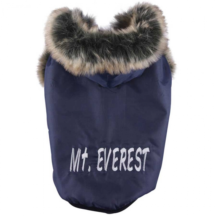 Blue winter jacket by Doggydolly dog fashion. This dog coat is not only really sweet with its fur borders on the hood and the sleeves - it is funtional at the same time. The exterieur material is water- and dirt-repellant. The dog coat keeps your dog really warm during the cold winter time. The hood protects your dog's ears against wind and snow and can be fixed on the back by velcro when out of use. Material: water- and dirt-repellant synthetic fleece lining Measure: Back/chest XS: 23cm/30cm S: 27cm/36cm M: 29cm/40cm L: 32cm/46cm XL: 38cm/50cm XXL: 40cm/54cm