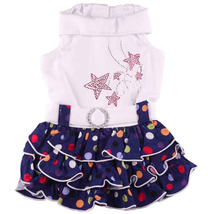 The yellow stars and big colored dots will make your dog ready for the big party. Details: -turtleneck -ruched skirt -deco belt -black skirt with colored dots