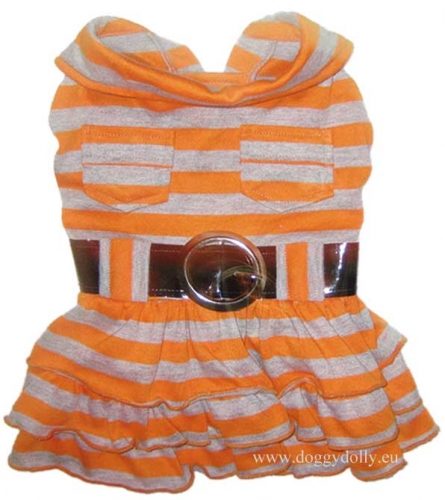 Details: orange and grey stripes pleated dress collar sewn pockets with white buttons black belt Also available in brown-grey Measures: Length of the back Breadth of the brist XS 22cm 30cm S 25cm 32cm M 30cm 36cm L 34cm 40cm XL 36cm 44cm XXL 40cm 48cm