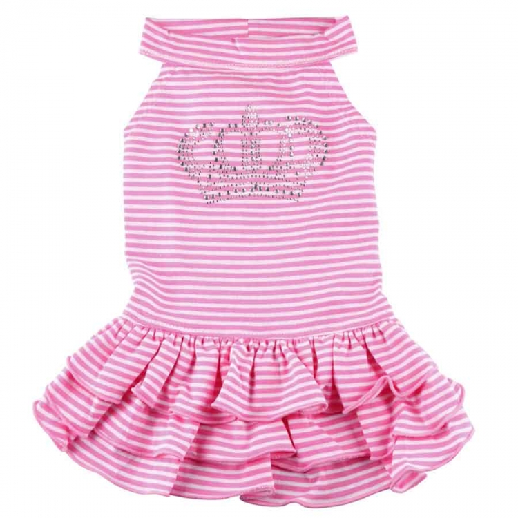 Your girl will be able to show all her elegance with that beautiful princess dress. Details: light pink and white stripes little shiny stones in shape of a crown pleated dress collar Exists also in blue Longueur de dos Tour de poitrine XS 24cm 26cm S 27cm 28cm M 35cm 36cm L 40cm 42cm XL 40cm 44cm XXL 46cm 50cm