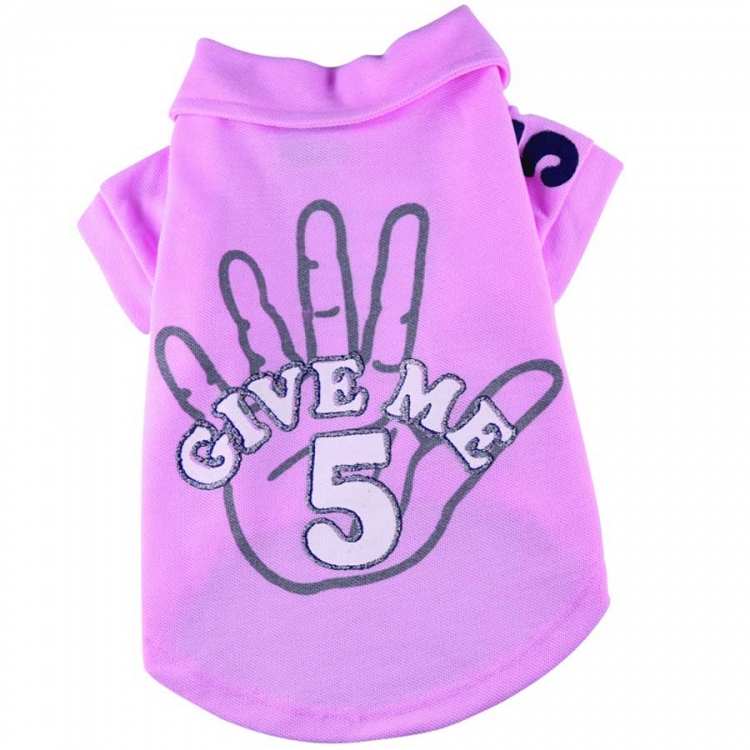 This polo shirt made from cotton is slightly thicker for the cooler days. Perfect for the beginning of spring and autumn Details: Pink polo shirt silver hand print White lettering "Give me 5" sewn collar Exists also in blue and orange Size: (Length of the back x Width of the brist) XS 24cm 30cm S 28cm 34cm M 31cm 42cm L 36cm 44cm XL 38cm 50cm XXL 43cm 52cm"