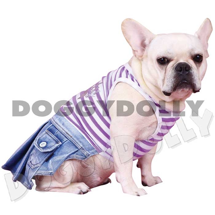 That pleated jeans skirt combined with a nice tanktop by Doggydolly dog fashion for pug and bulldog is a perfect way to show your darling in fashion dog clothes. A perfect summer dress for your dog!