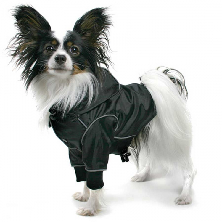 Dog rain coat black with reflectors, wind and water resistant, size XS
