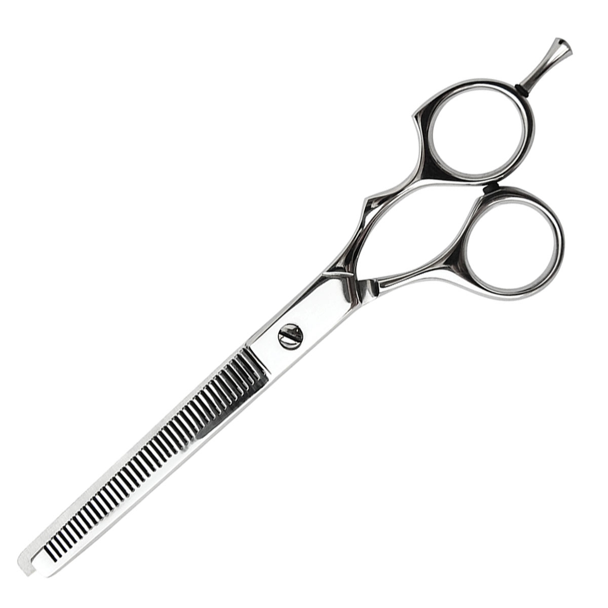 Blending scissors for dog grooming, 30 teeth, ideal for start-up groomers and students. Pure, refined line for optimal comfort and precision. Right-handed equipped with poucette for comfort of use.Llenght: 18cm, 30 teeth