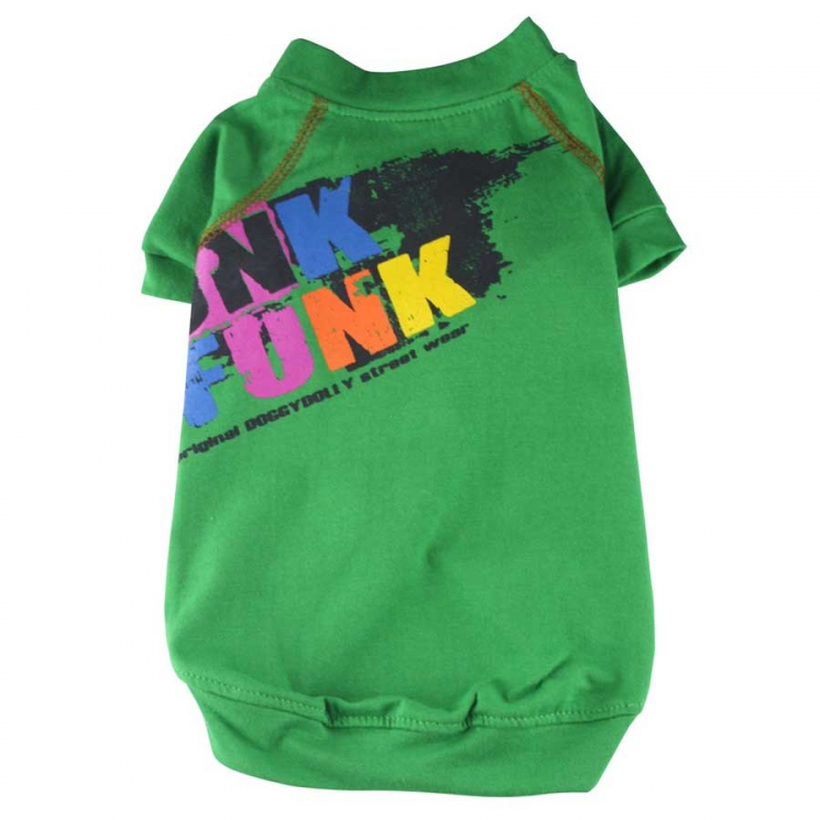 Magnifique t-shirt pour chiens vert avec inscription « Punk to funk » par Doggydolly mode canine. Les lettres de cette inscription sont en divers coloris est donnent à ce t-shirt le petit plus. Les coutures sont en jaunes. Ce shirt pour chiens est également disponible en gris, noir et blanc.